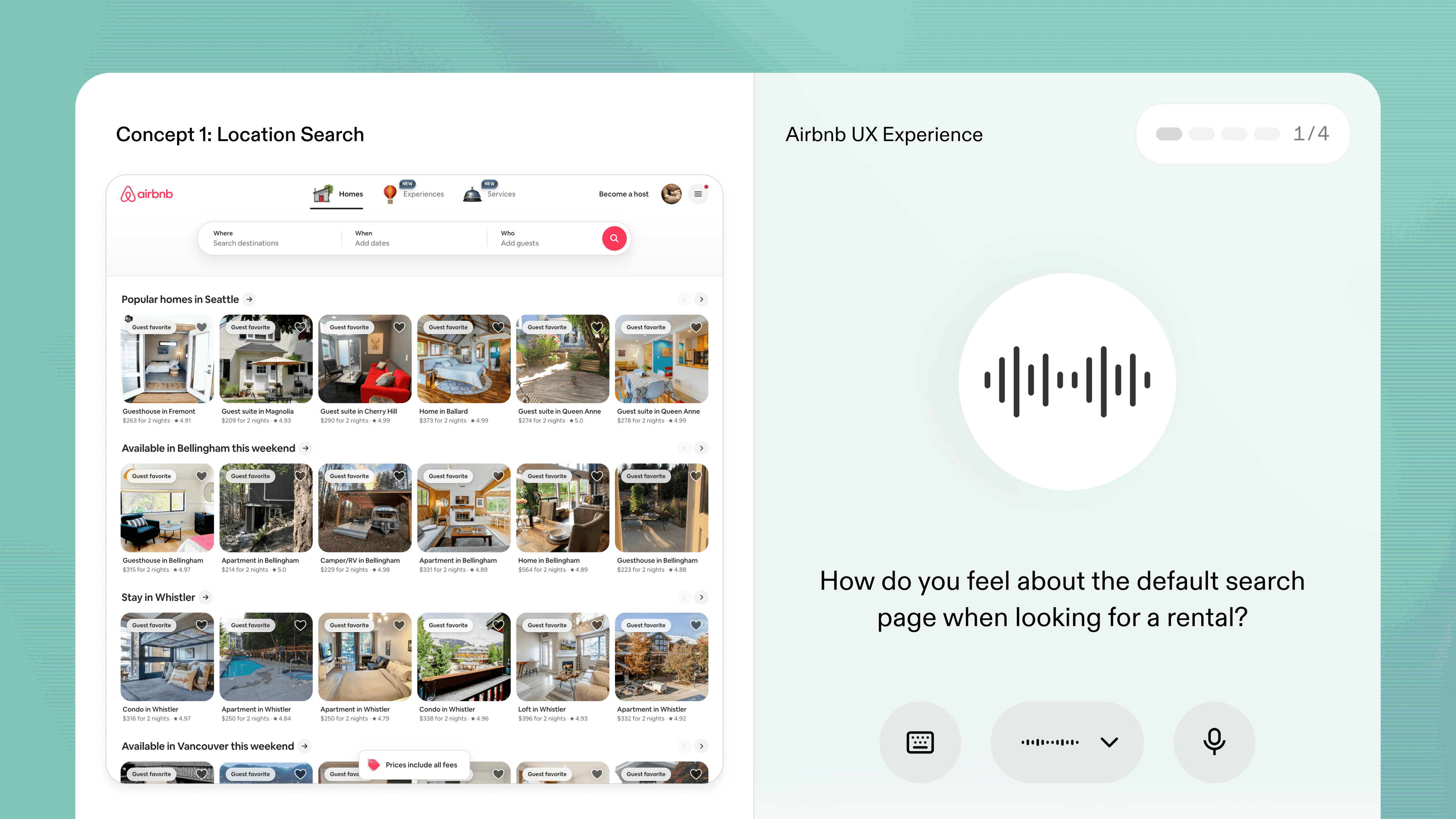 Validate concepts before you build with AI interviews at scale. Upload designs, launch in minutes, get results in hours. Available in Reforge Research.