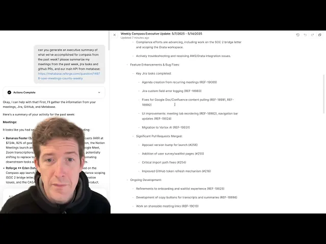 Today we are launching Compass, a new product from Reforge. Our second product in helping product teams become AI-native. Compass pulls every meeting transcript, ticket, and metric into one place—and turns them into tasks you can ship.