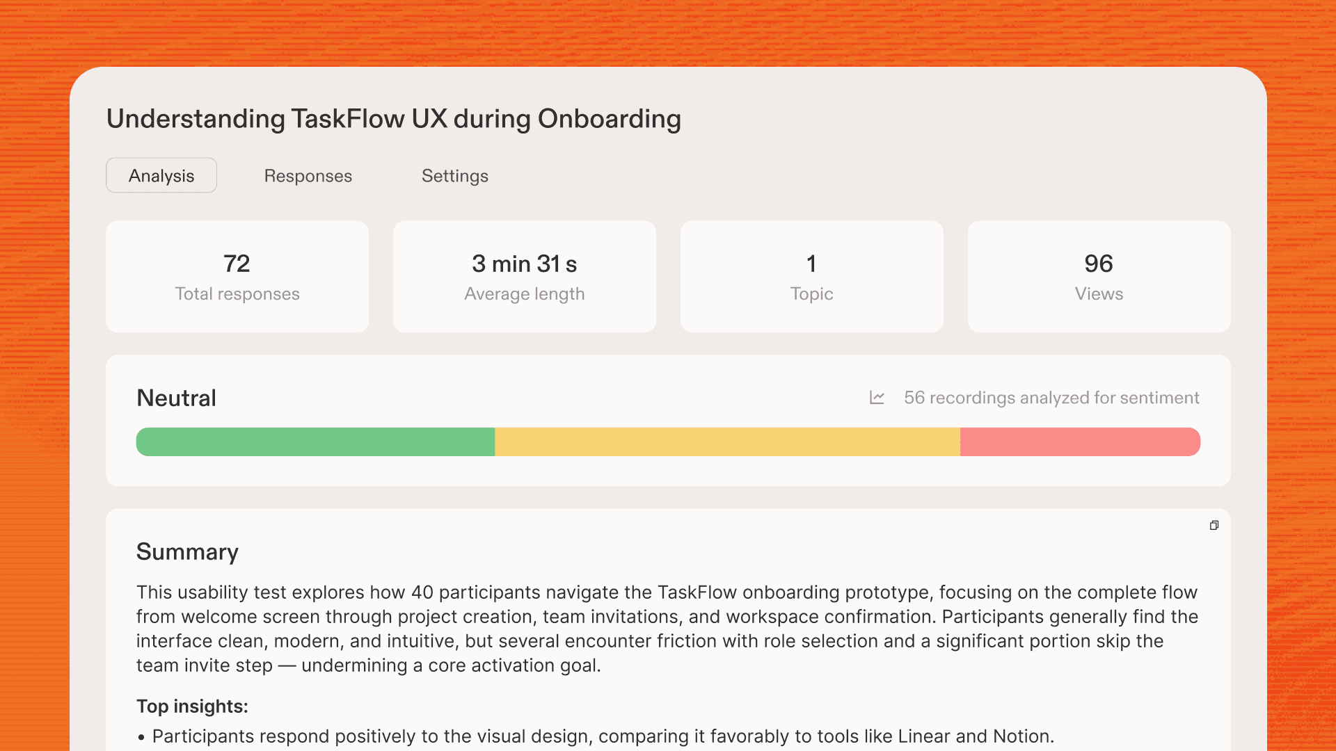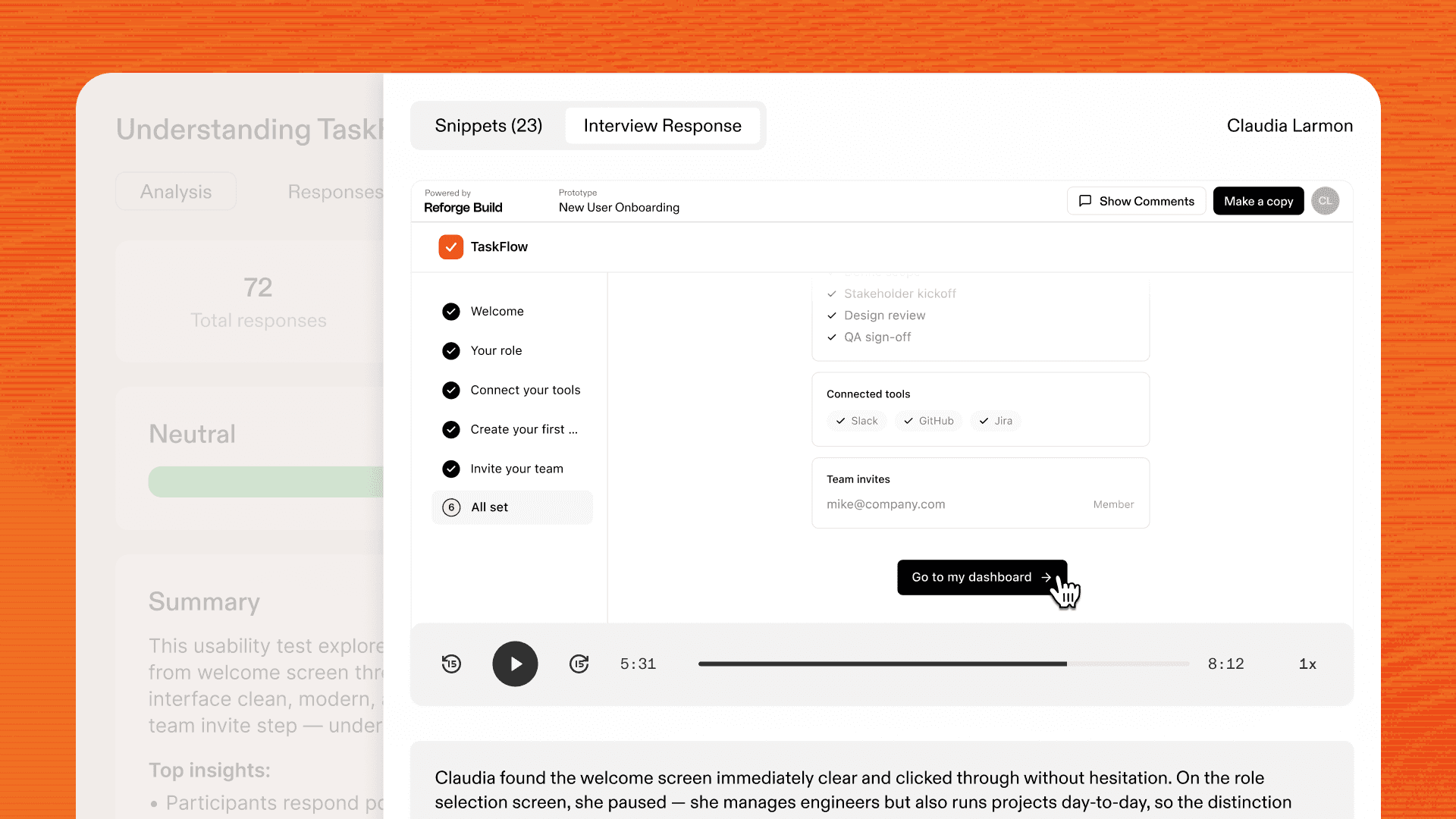 When sessions are complete, you'll get a session replay for each user, individual takeaways, and synthesized insights across all interviews.