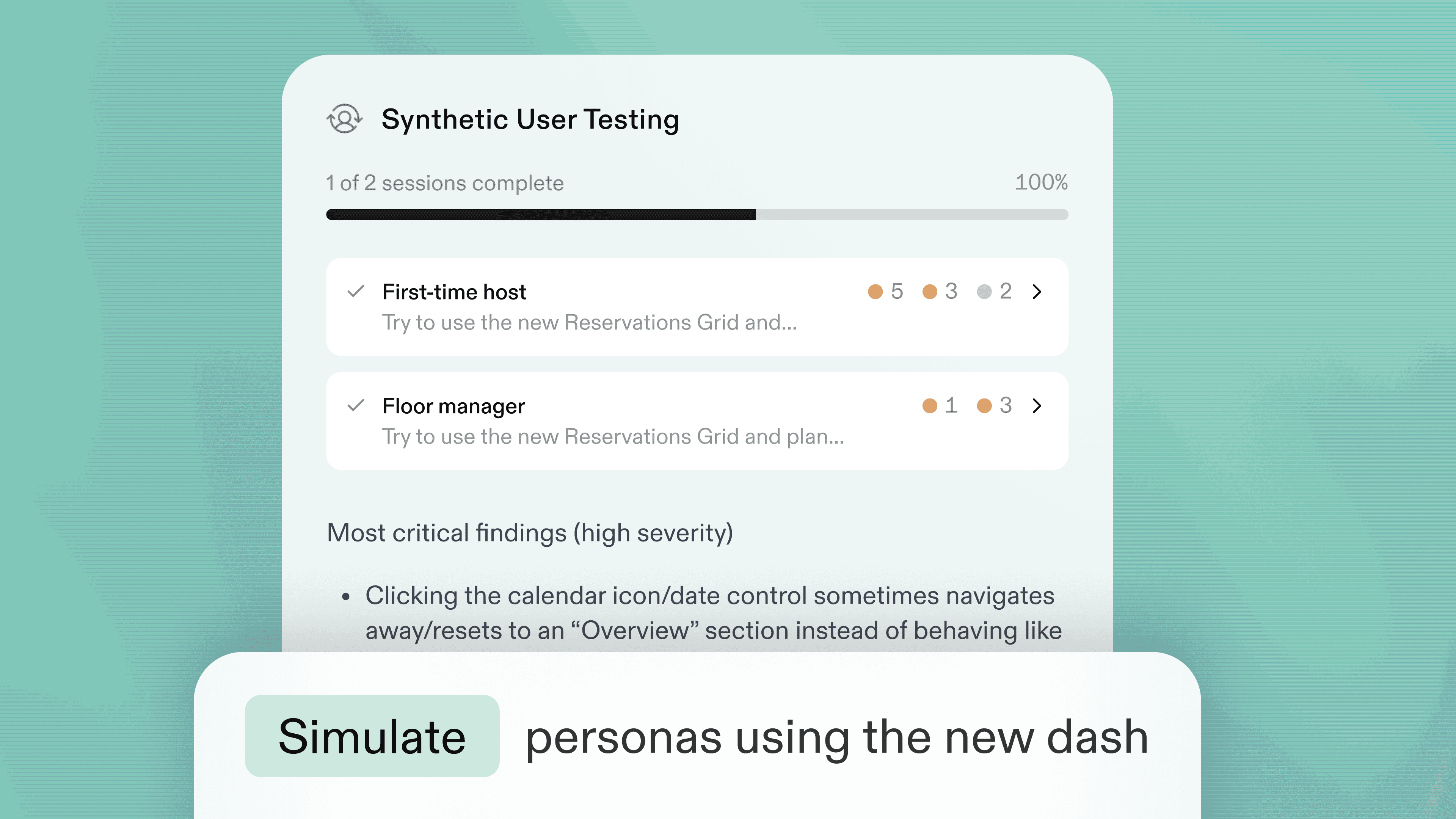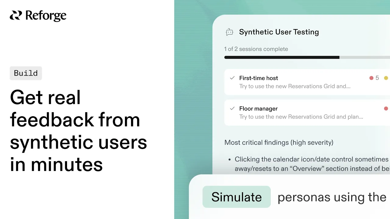 Synthetic Users is available now in Reforge Build. Your first test is on us and takes about five minutes to set up. You can see the results of our sample test here.