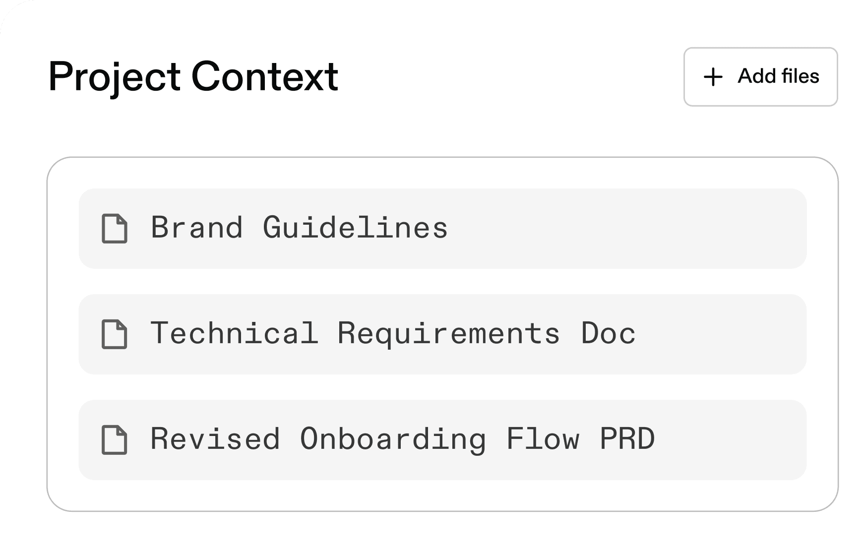 Simply share your context (PRDs, OKRs, one pagers, screenshots, etc.) to discrete projects to set local contexts for greater control.