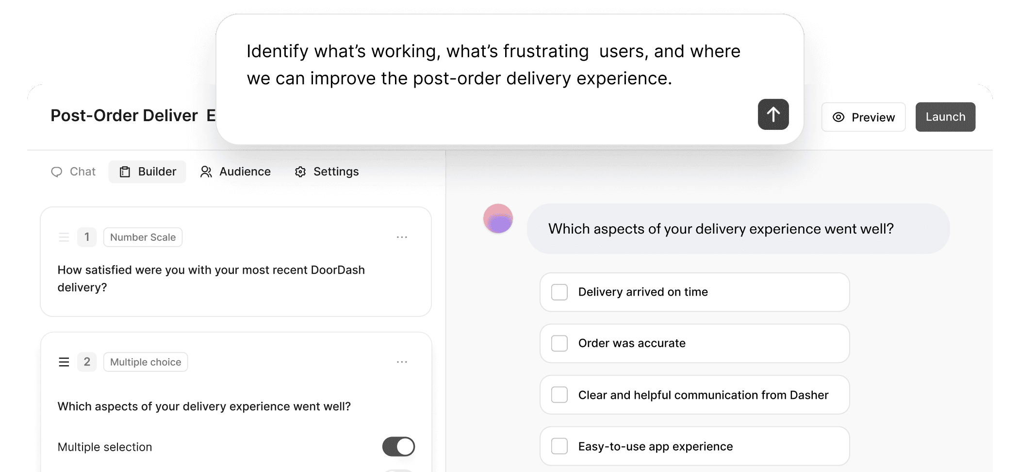 Generate actionable surveys that ask the perfect follow-up questions.